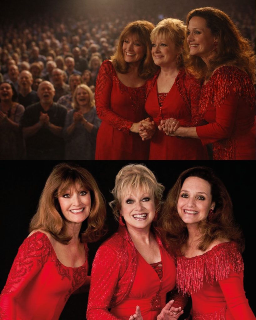 One voice wavered. Just slightly. Not because it couldn’t reach the note — but because the weight of it arrived all at once. Years rushed in. Parents gone. Sisters older. Audiences who had grown up and grown old alongside them. Another sister reached out instinctively. Fingers touched. The harmony cracked for a heartbeat.