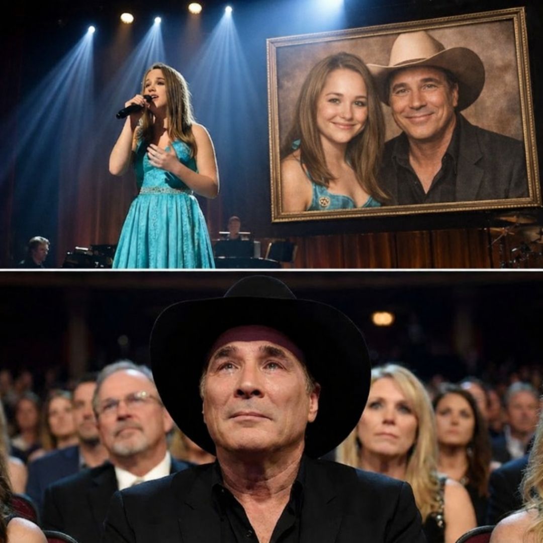 Clint Black didn’t move toward the microphone. He stayed still, hands folded, allowing the moment to belong entirely to her. For decades he had carried the song as a vow — a declaration tied to marriage and promise. Now he watched as that same vow returned through the voice of someone who had grown up inside its meaning.